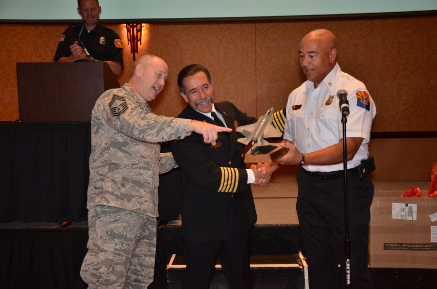 56th CES fire chief; Glendale Chief Mark Burdick and Tony Rabonza, 56th